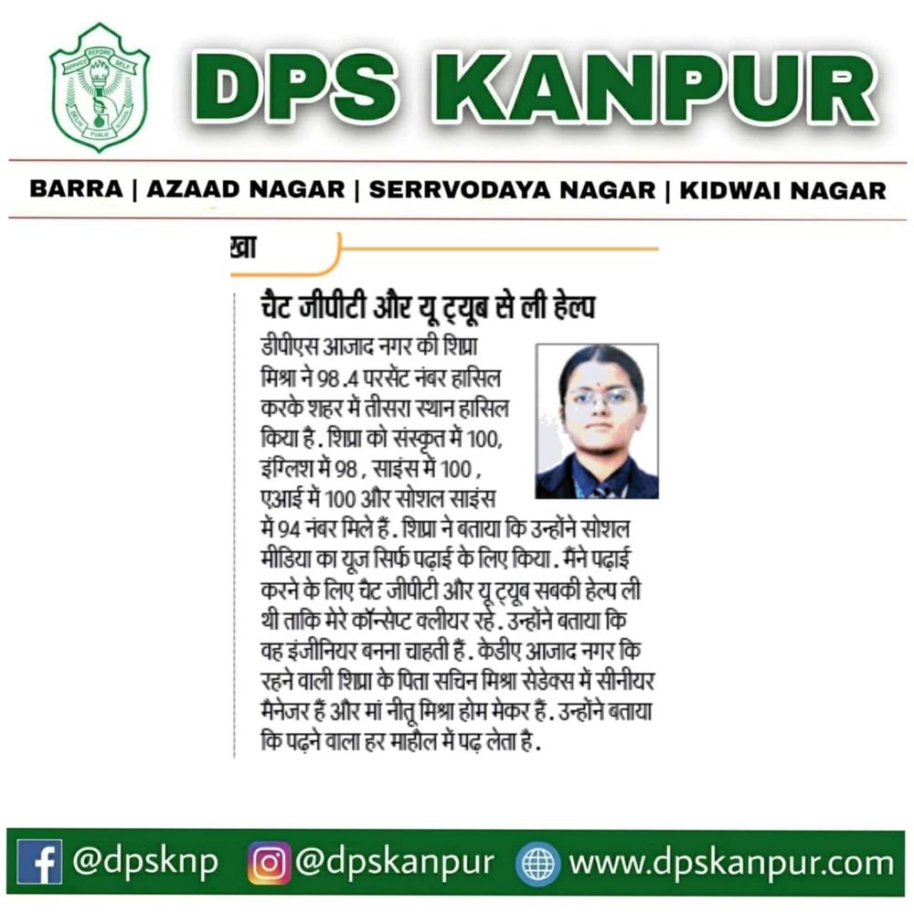 Delhi Public School Azaad Nagar has always proved its academic excellence through its stupendous results. The CBSE Class XII & Class X Board Examinations are a testimony of the dedication of the students, staff and management with 100% results in the academic session 2024-2025.